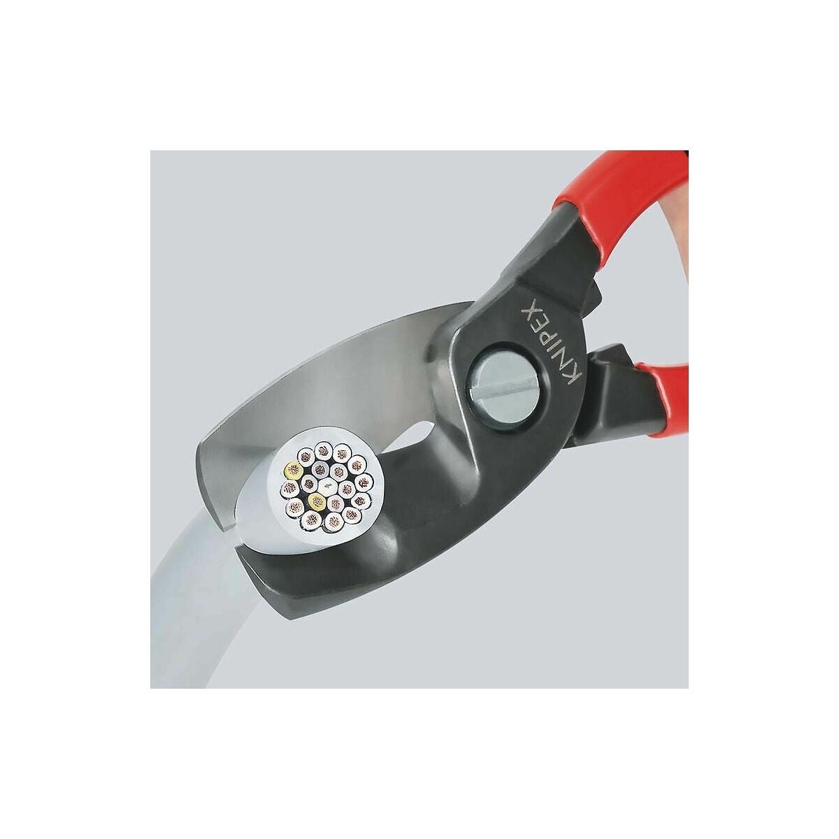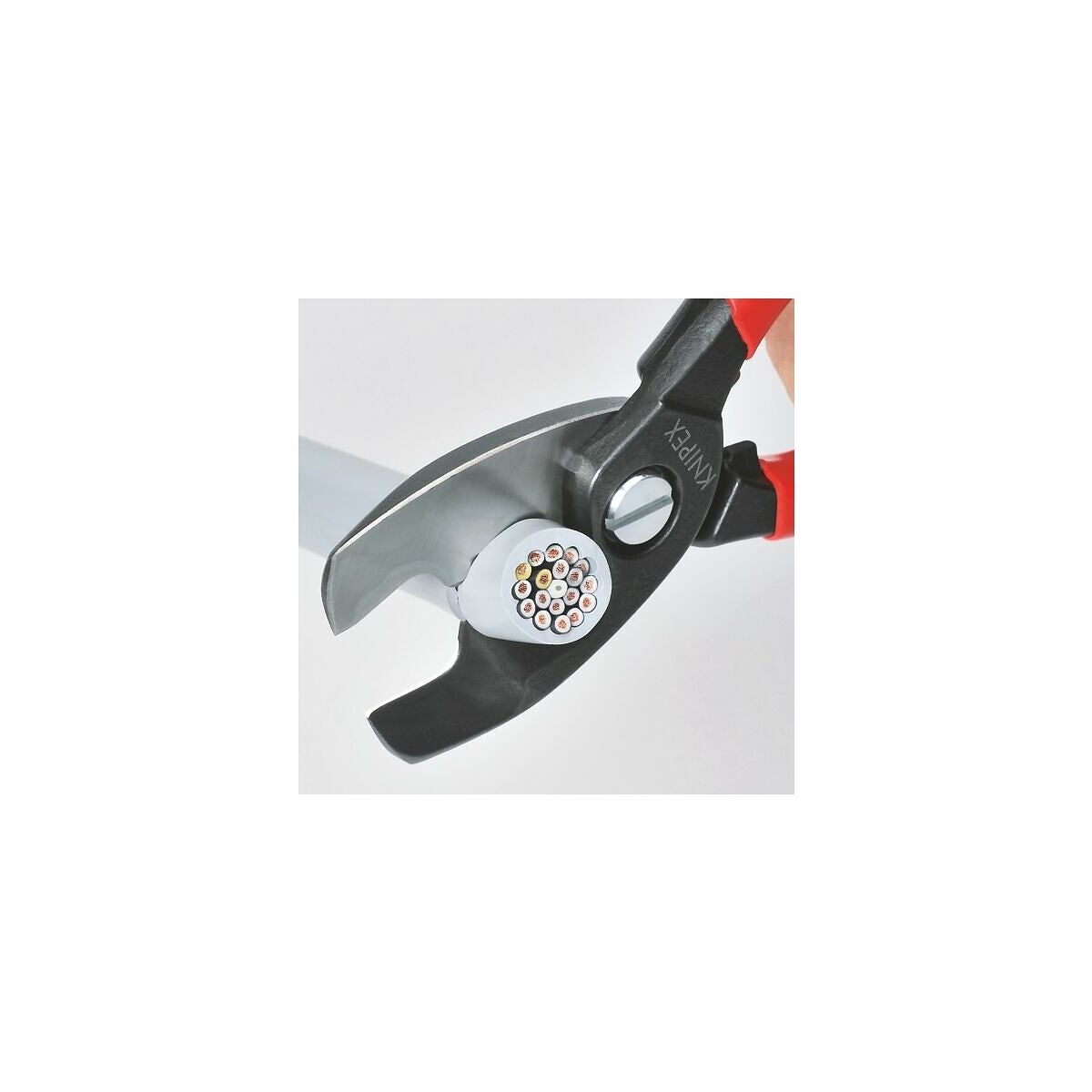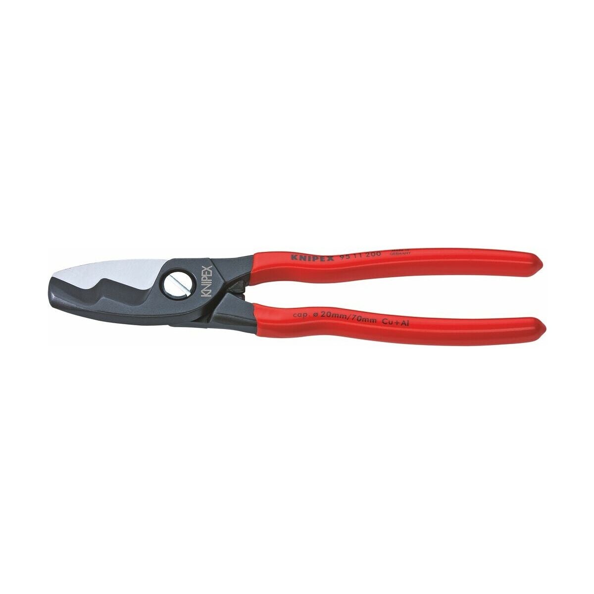Huvud med bågformade skär. Brunerad sax, plastklädda handtag.