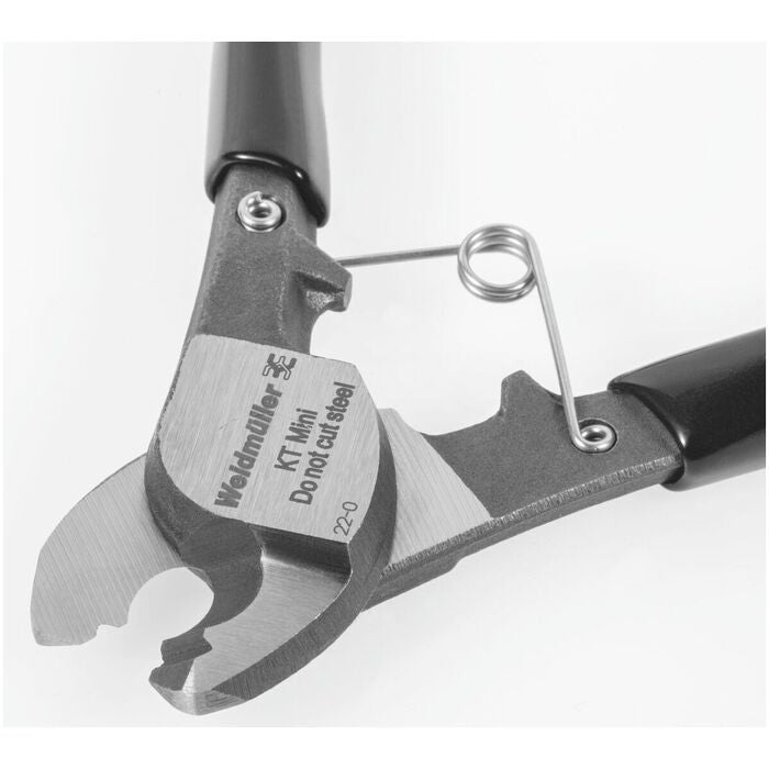 Huvud med bågformade skär. Skänklar med plasthandtag. Kapar slätt och rent utan att klämma kabeln.