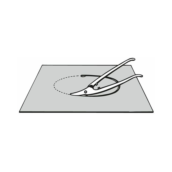 Av verktygsstål, skären induktionshärdade (HRC 58 − 60). Även för rostfri plåt.