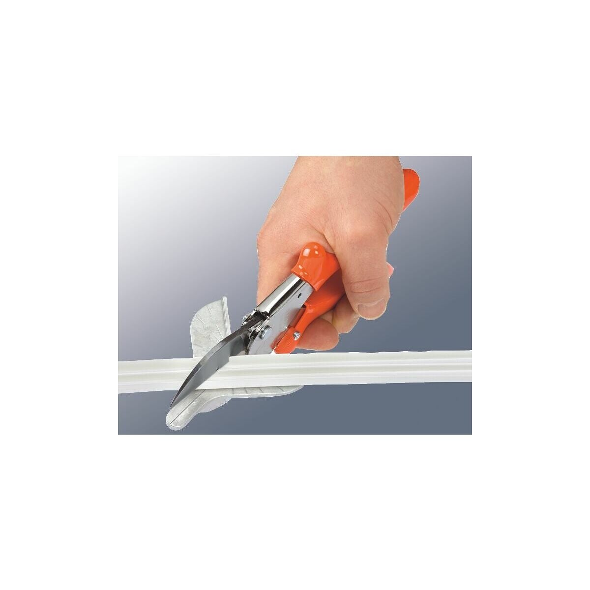 För klippning av geringar på lister och profiler av plast, gummi eller trä.