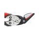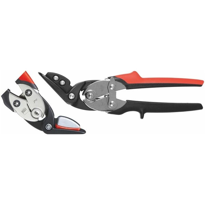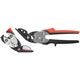 Säkerhetsbandjärnsax med dubbel utväxling. Skär av seghärdat fingods, eggarna induktionshärdade. En fasthållningsanordning av polymermaterial förhindrar att bandjärnet sprätter upp när det klippts av. Med 2K-grepp och halkskydd. För härdade bandjärn upp till 32×1 mm.