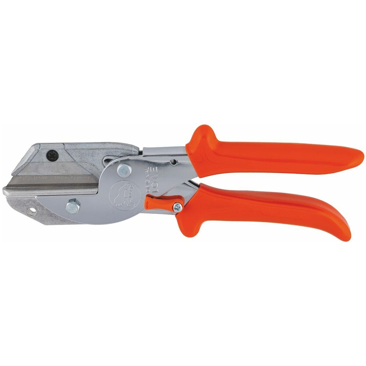 Saxkropp av stålplåt, mothåll av lättmetall. Lätt dragande snitt. Plastklädda handtag med halkskydd. Högglansförkromad sax. inklusive 1 trapetsklinga.