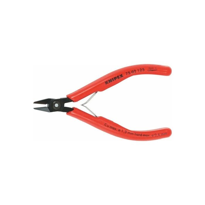 Spetsig form med stor klippfas, specialkonstruerad för hård tråd. Inställbar skruvled. Brunerad tång med grepphylsor av plast.