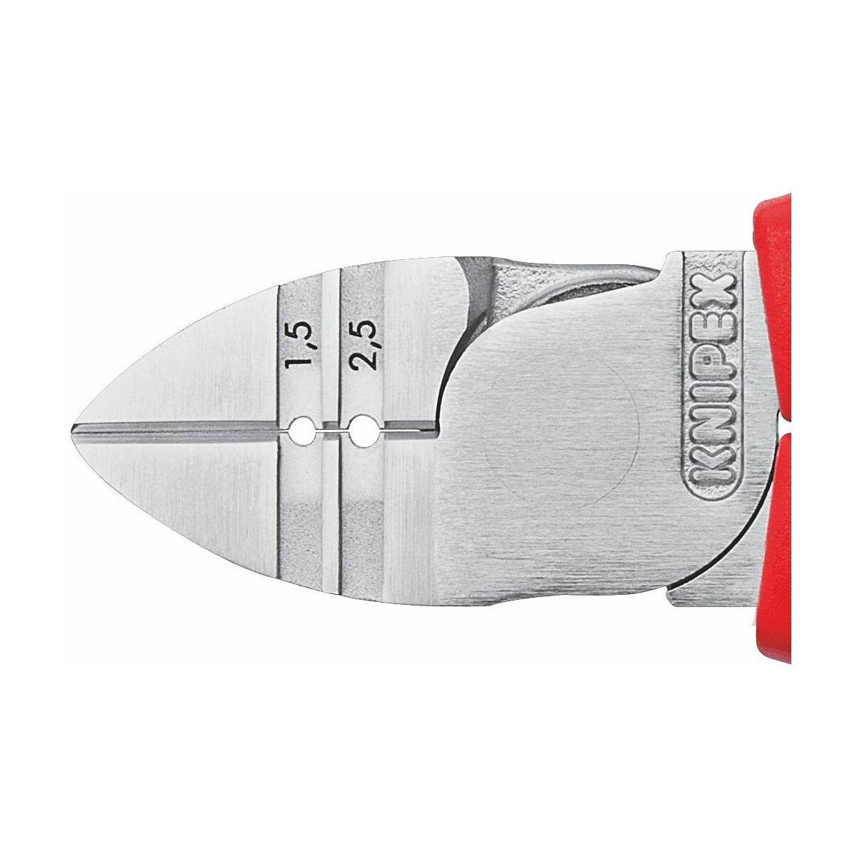 Induktionshärdade precisionsskär (ca 60 HRC) för mjuk tråd. Precisionsavisoleringsknivar för entrådiga (massiva) ledare 1,5 och 2,5 mm2. Skänklar med tjockväggiga grepphylsor isolerade upp till 1 000 V enligt DIN EN 60900 / VDE 0682-201.