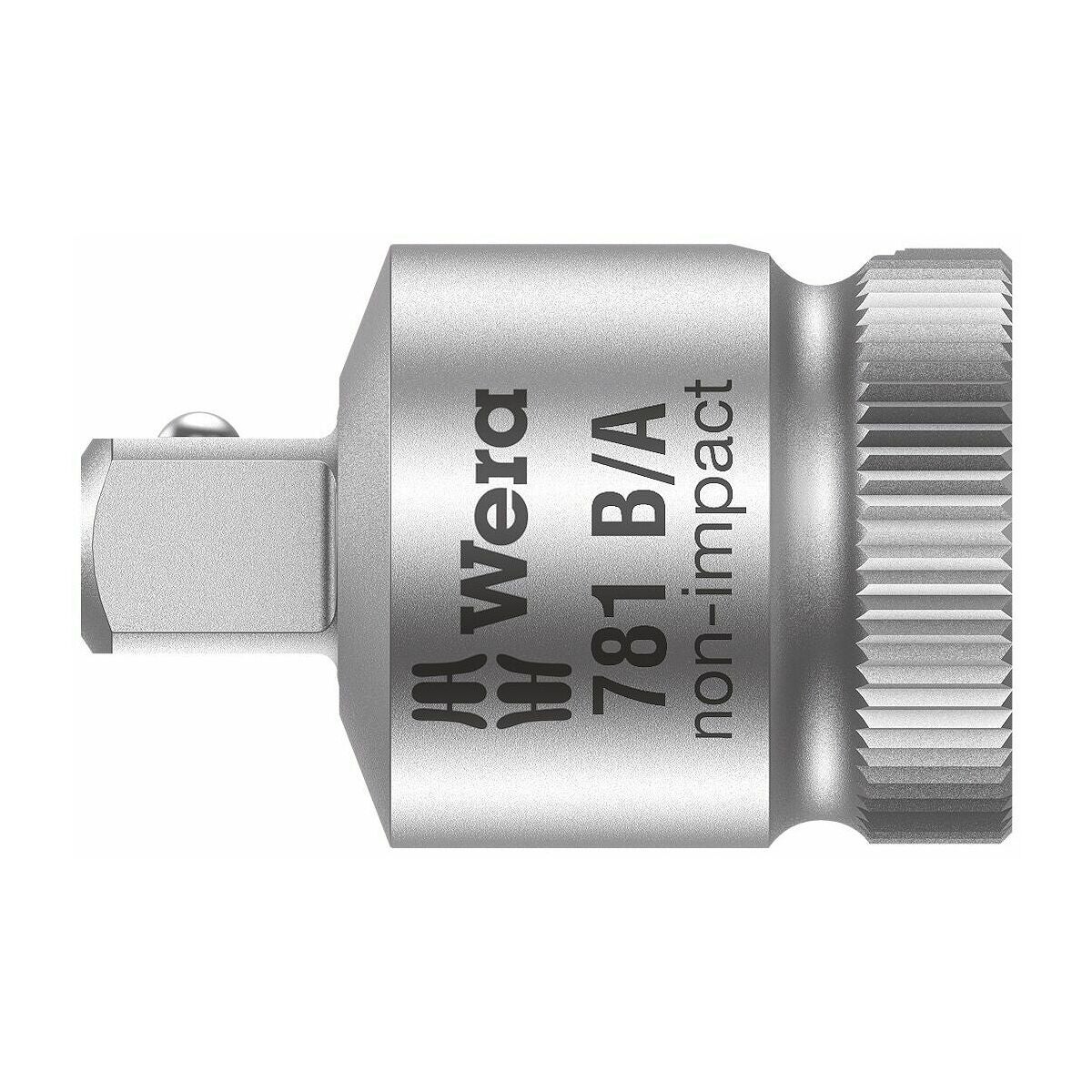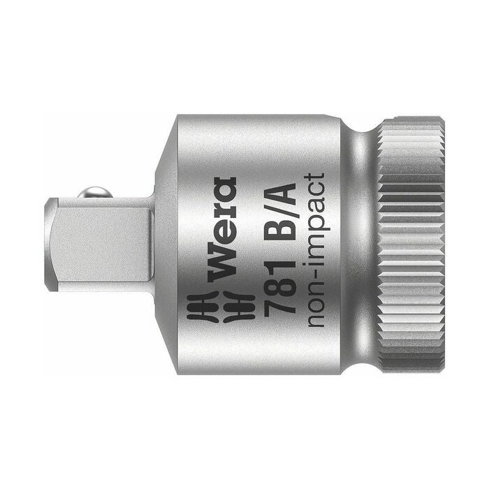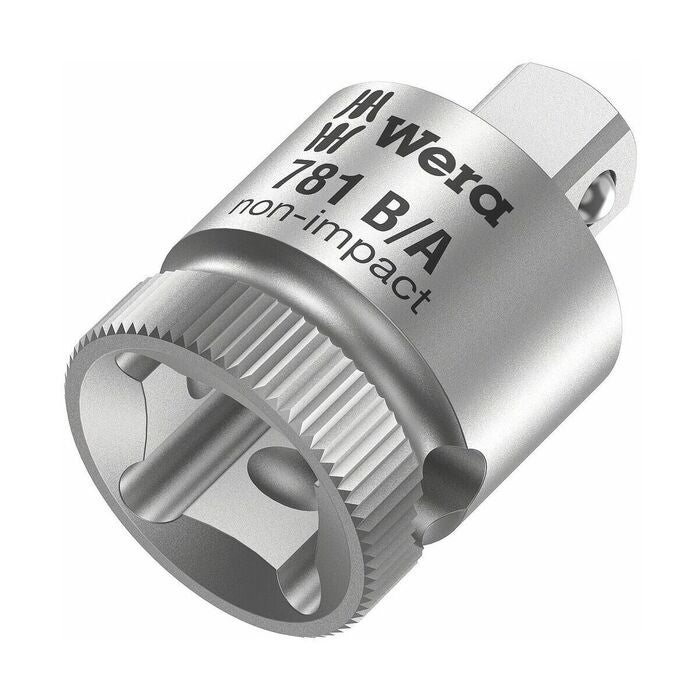 Smidda, utvändiga fyrkanter med kulspärr, invändiga fyrkanter med kulfångningsspår för säker spärrning av det anslutna verktyget. Lettring vid änden som ger säkert grepp.