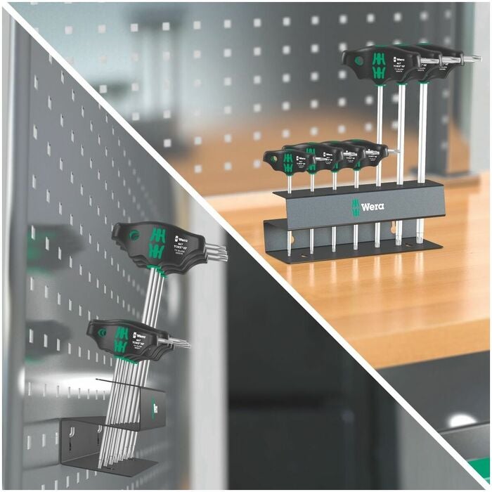 Utförande Ergonomiskt 2-komponenthandtag med fingergreppurtag och behaglig haptik för mycket hög kraftöverföring och arbete som inte tröttar. Med kraftuttag på sidan och fasthållningsfunktion på den långa skänkeln som ger en säker fattning av skruven i verktyget. Klingans yta mattförkromad. Leveransomfång tabellanvändning Vardera 1 skruvdragare nr 625173: TX10; TX15; TX20; TX25; TX30; TX40; TX45