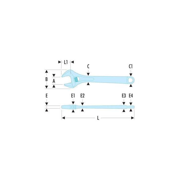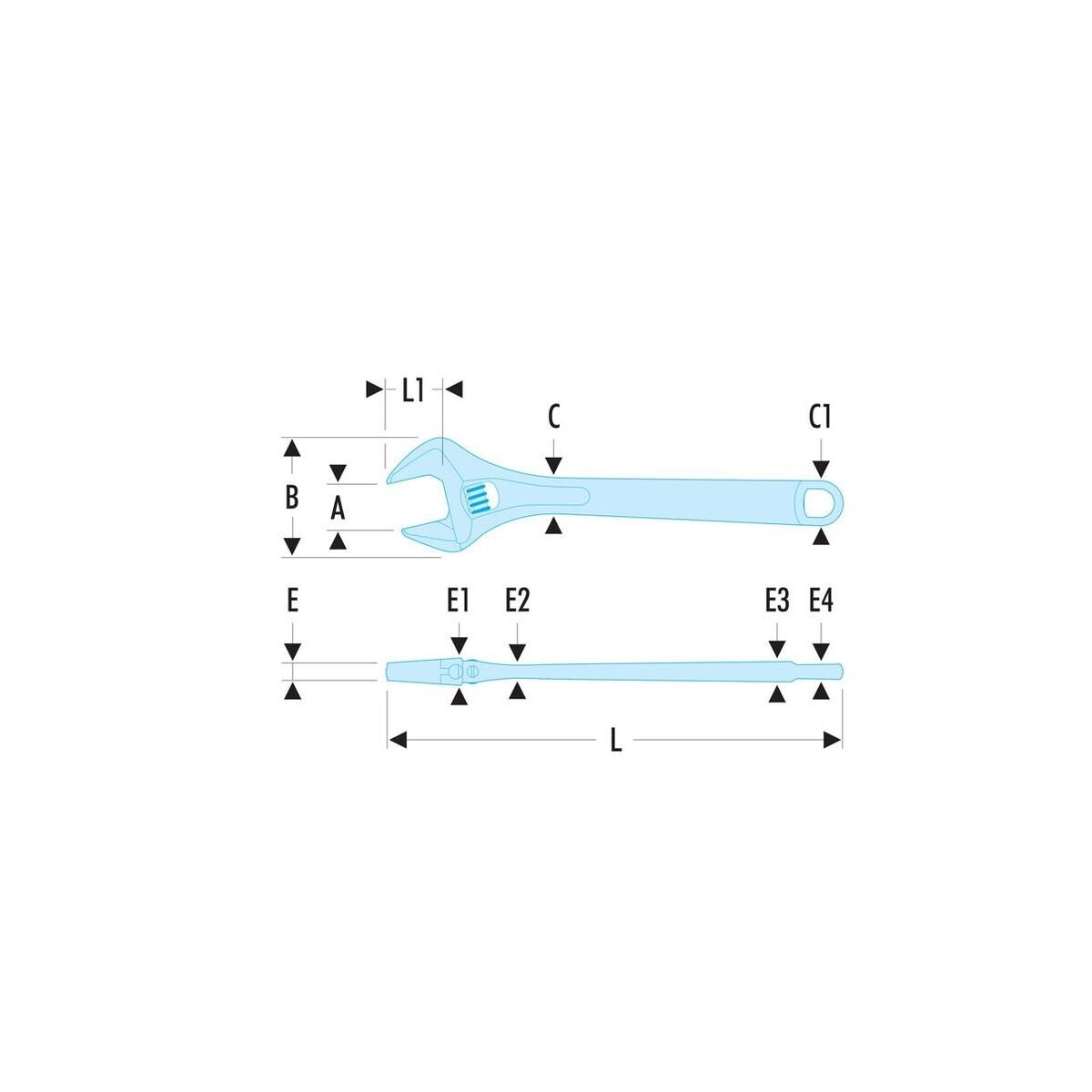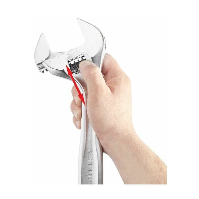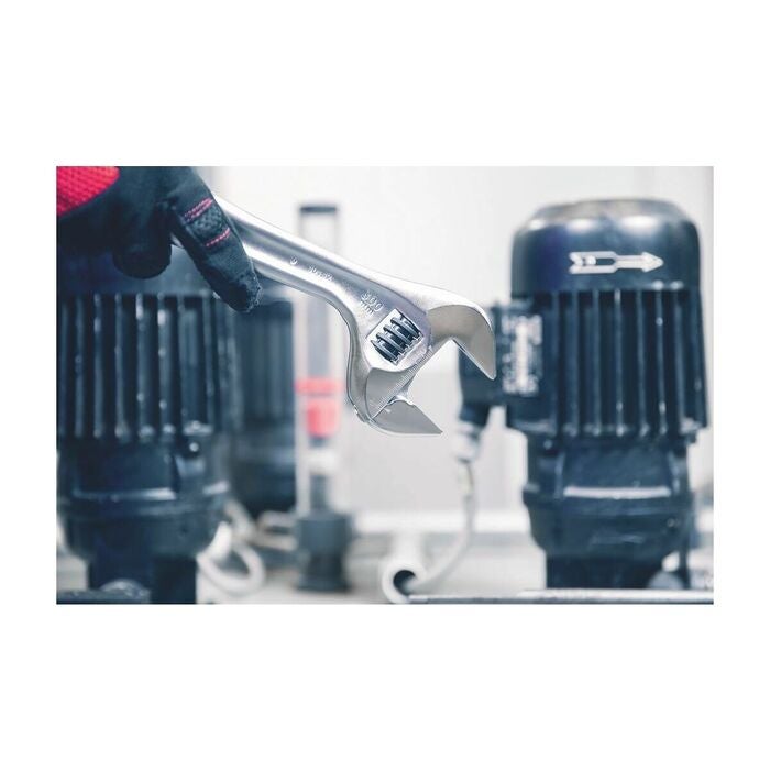 Ergonomisk form, förkromad. Käftställning 22,5°. Tidsbesparande och snabb inställningsmekanism. Med metrisk och tumindelad skala på käften.