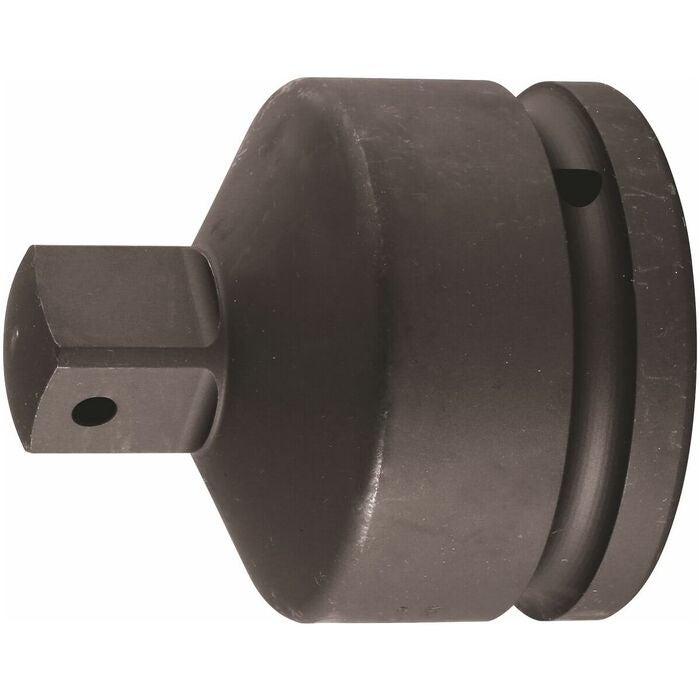 Kraftigt utförande för användning med el- eller tryckluftsdrivna mutterdragare. Med tvärhål och ringspår för infästning. Innerfyrkant enligt DIN 3121.