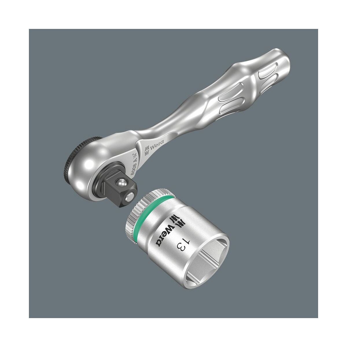 Med omställningsspak för höger- och vänstergång. Det lettrade vredet medger snabb skruvning i trånga lägen där det inte finns plats för spärrnycklar.