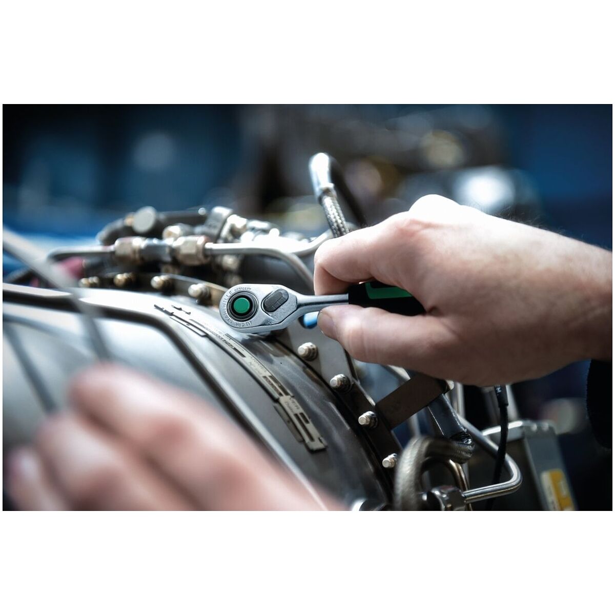 Robust spärrnyckel i kort, slank form. Särskilt lämpad för trånga utrymmen. Med ergonomiskt fingerstöd i handtagets ände. Vinklade 15°.