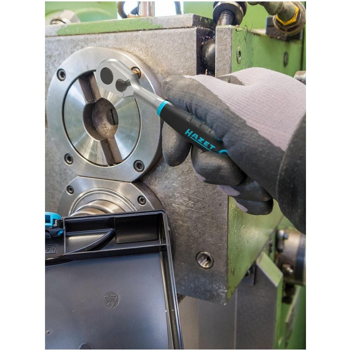 Robust spärrnyckel i kort, slank form. Särskilt lämpad för trånga utrymmen. Med ergonomiskt fingerstöd i handtagets ände. Vinklade 15°.