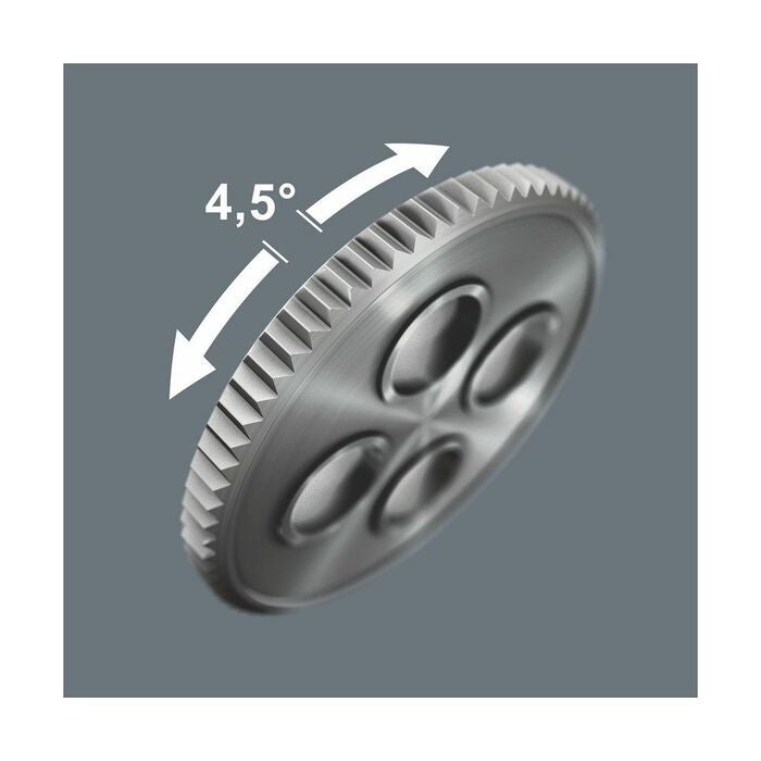 Med utstötare och omställningsvred för höger- och vänstergång, arbetsvinkel 4,5°.
