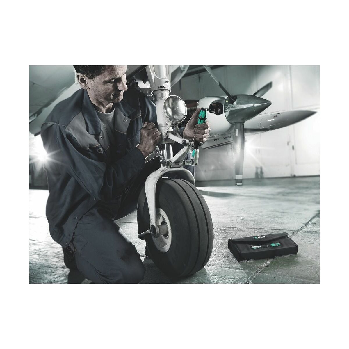 Fritt svängbar spärrnyckel med definierade spärrlägen vid 0° (användning som skruvmejsel) och vid 75° och 90° på båda sidor. Arbetsvinkel 5°, med utstötare och omställningsvred för höger- och vänstergång.