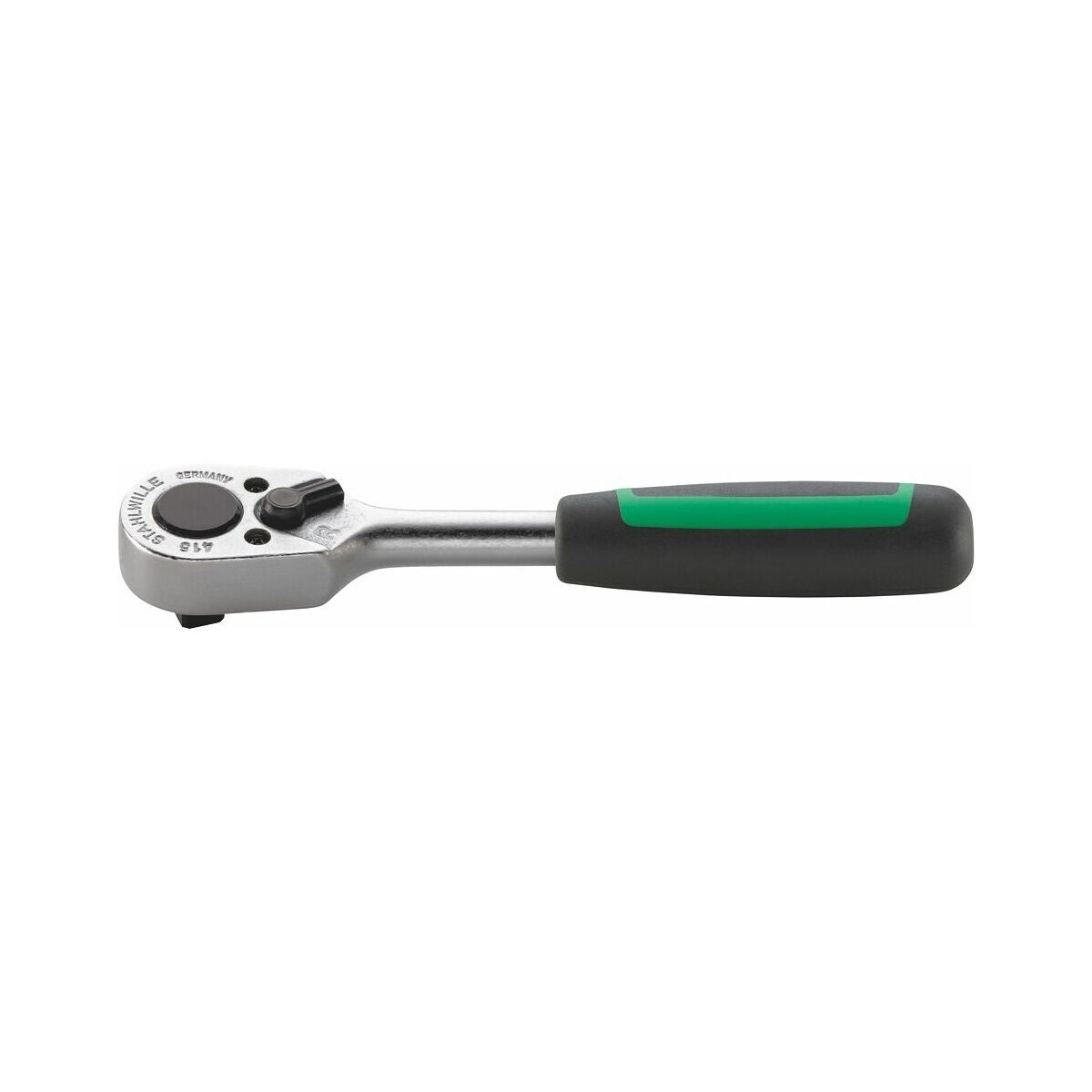Robust spärrnyckel i kort, slank form. Särskilt lämpad för trånga utrymmen. Med ergonomiskt fingerstöd i handtagets ände. Vinklade 15°.