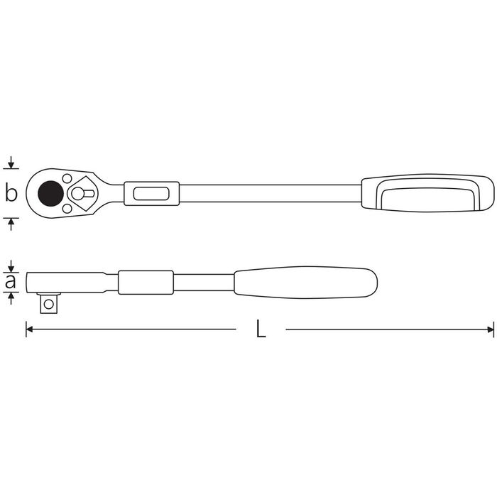 Utvändig fyrkant enligt DIN 3120-A 12,5 med fjädrande kula.