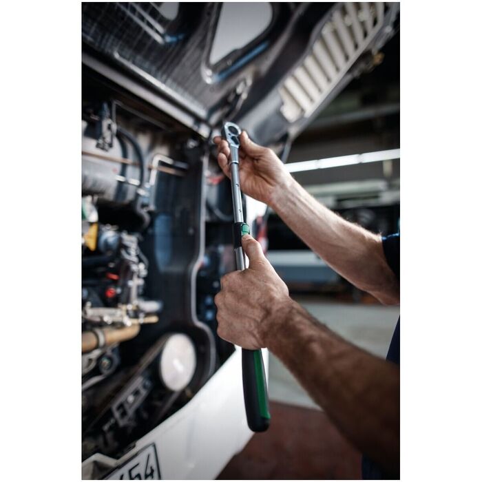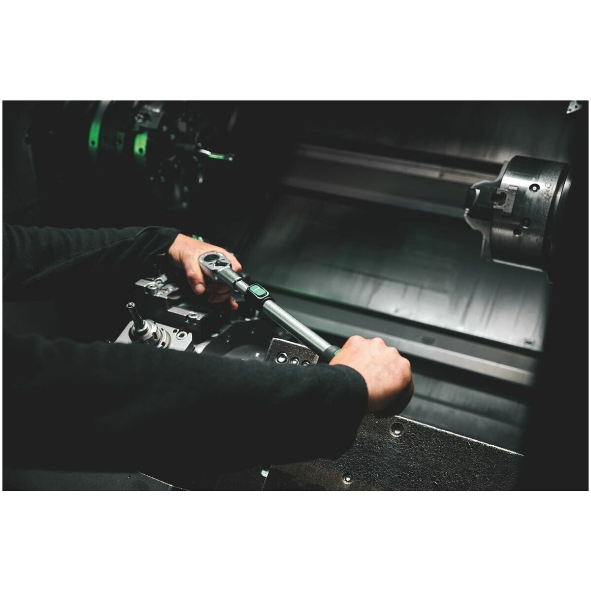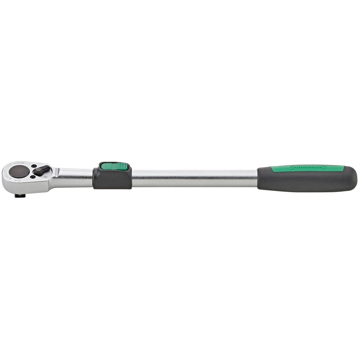 Bekväm, enkel och snabb - även enhandsjustering - justering av längderna via en vippomkopplare. Fem spärrsteg med utdragsslängder på 410 mm, 465 mm, 520 mm, 575 mm och 630 mm. Största tillåtna vridmoment 512 Nm.