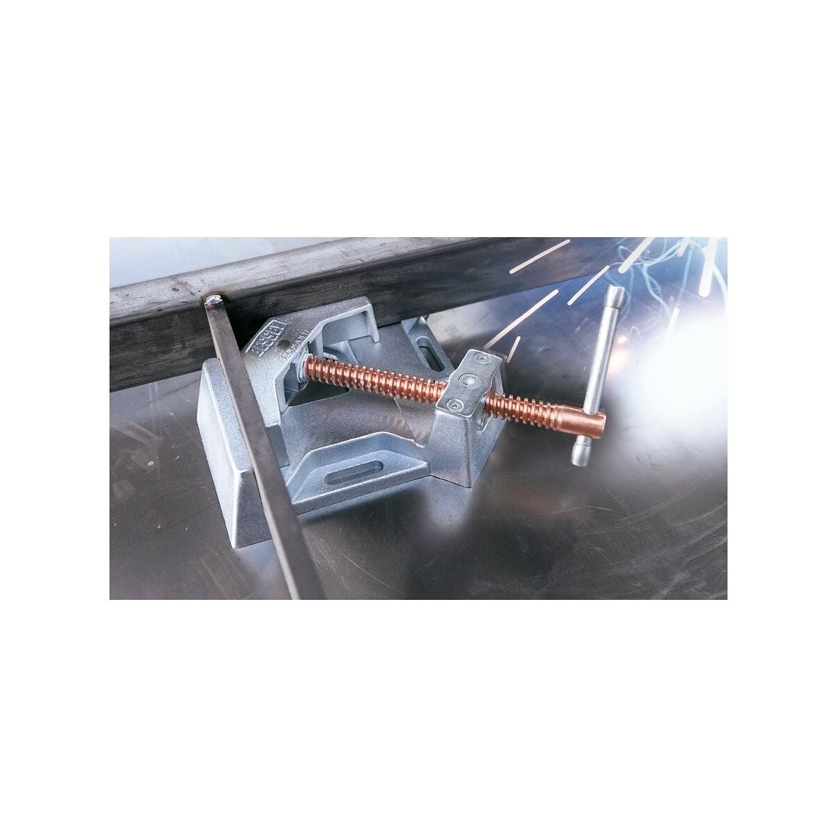 För vinkelrät fastspänning av arbetsstycken vidsvetsning och monteringsarbeten.