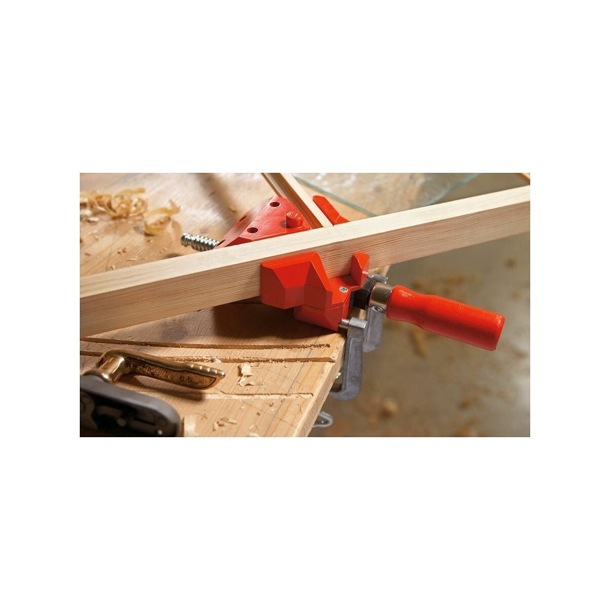 För vinkelrät fastspänning av platta material, profiler med mera vid skruvning, limning etc. Får inte användas som svetstving.