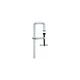Skena och fast back av profilerat stål, seghärdat och galvaniskt förzinkat. Rörliga backen sänksmidd, seghärdad och galvaniskt förzinkad. Lättgående, slitstark stålspindel med trapetsgänga och rörlig (upp till 35°) specialtryckbricka, seghärdad och brunerad spindel med skjutbart T-handtag.