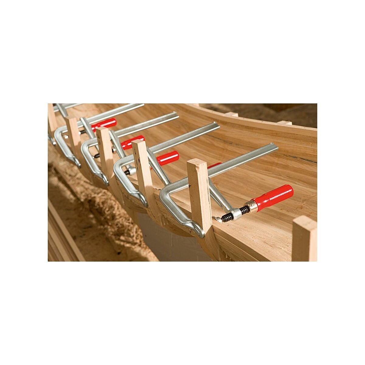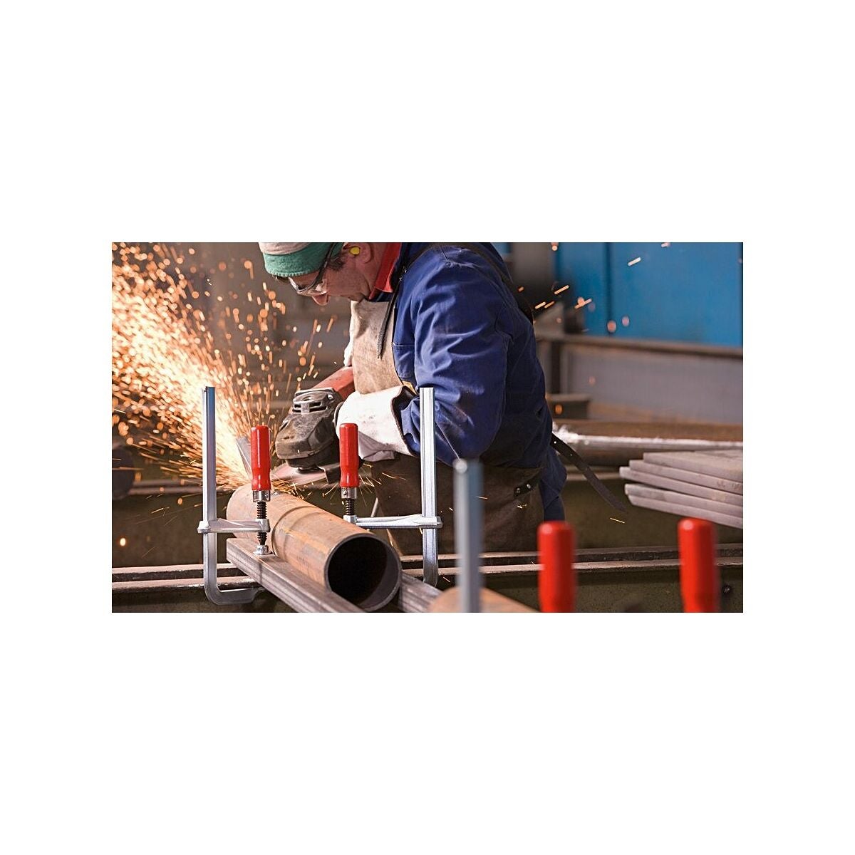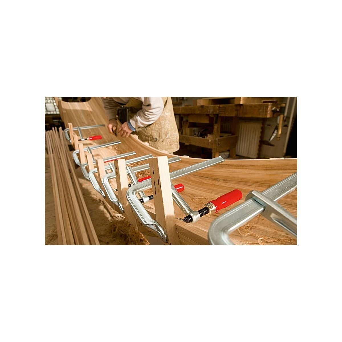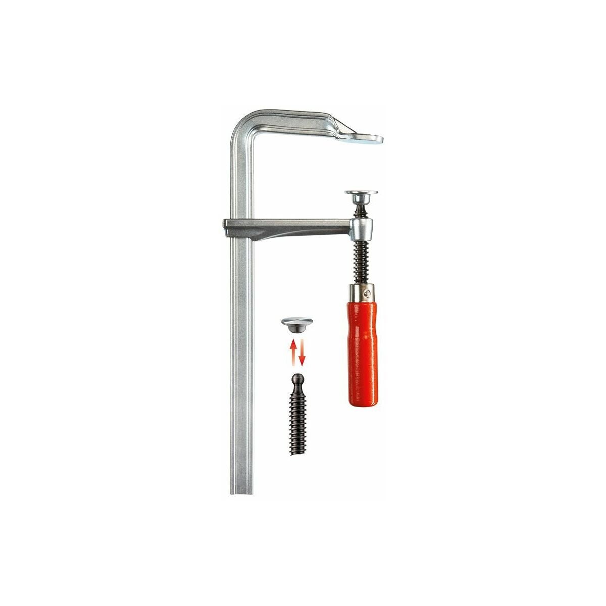 Skena / fast back av draget stål, rörlig back av sänksmitt stål, allt seghärdat och galvaniskt förzinkat. Lättgående stålspindel med trapetsgänga, brunerad.