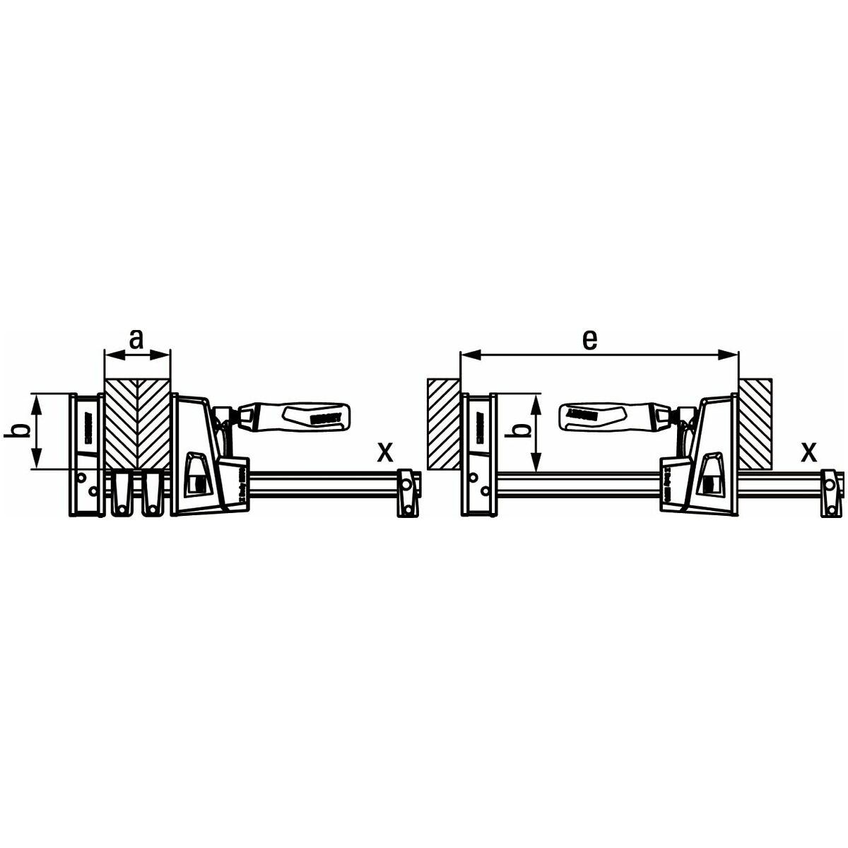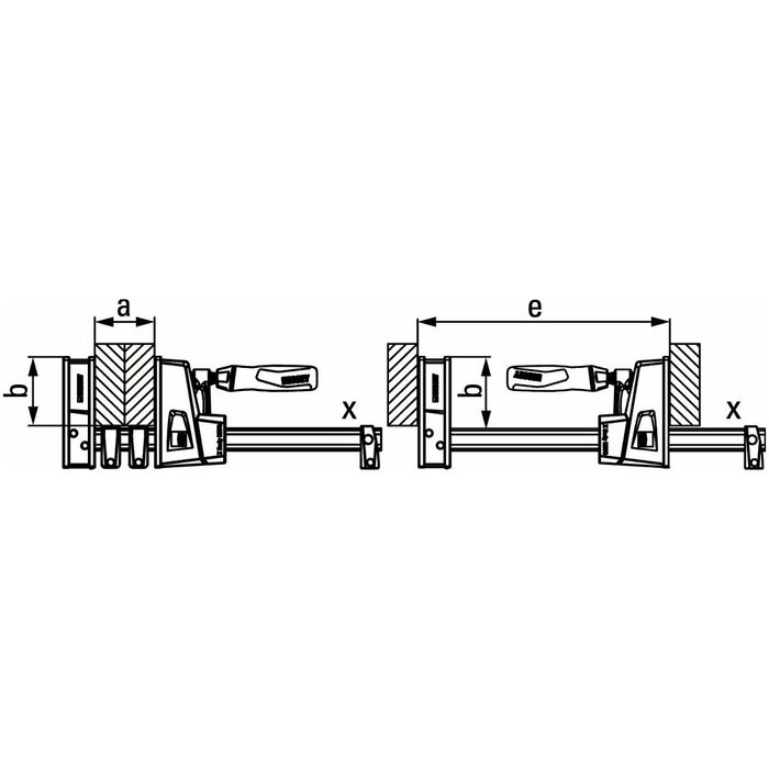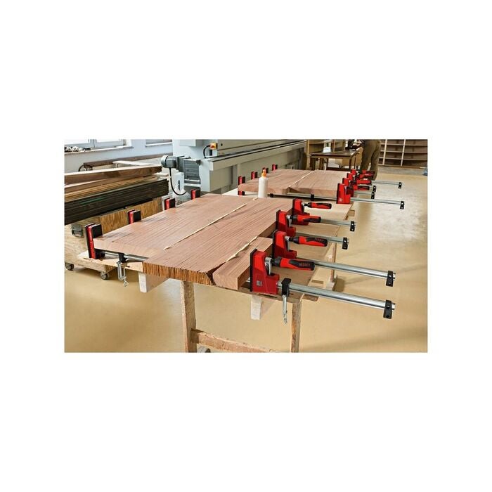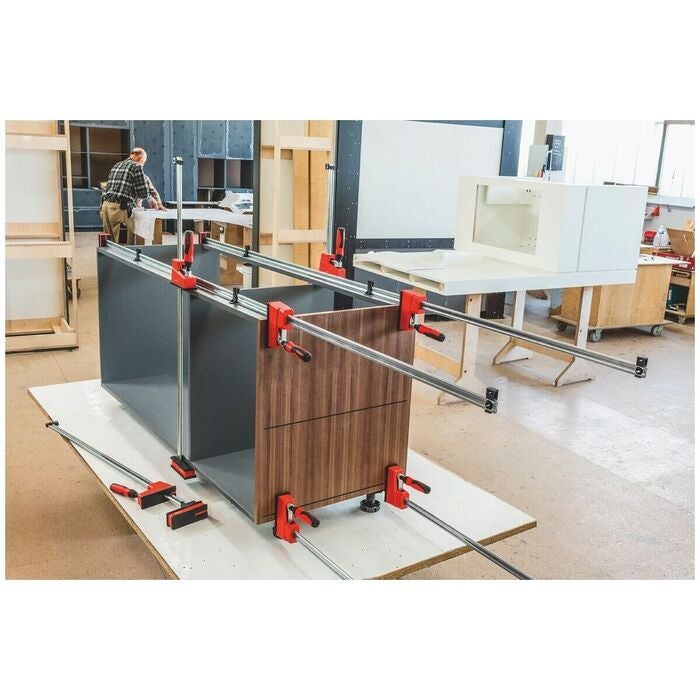 Tvingen spänner hela vägen runt skenan, dvs även bakom och på sidan av skenan. Det gör att spännpunkter blir åtkomliga som inte kan nås med vanliga skruvtvingar. För spridningsfunktion kan vändas utan verktyg.