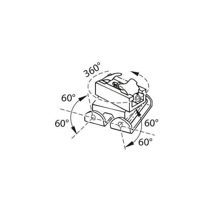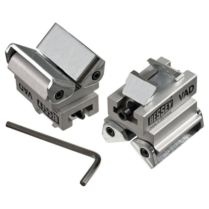 Vridbara och rörliga backar som anpassar sig till arbetsstyckena, från invändiga vinklar på 60° till utvändiga vinklar på 60°.
