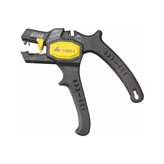 Mycket stabil och lätt tångkropp av glasfiberarmerad plast. Skären anpassar sig automatiskt till olika kabeldiametrar. Isoleringen kapas och skalas av i ett och samma arbetsmoment.