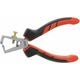 Vinklade käftar med V-formade skär (för max 5 mm ytter-⌀). Infälld led med glappfri gång och returfjäder. Med ställskruv för inställning av ledararea.