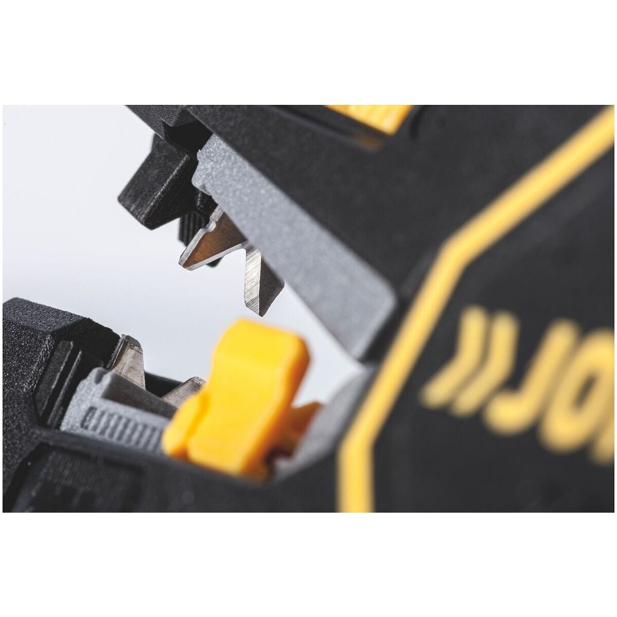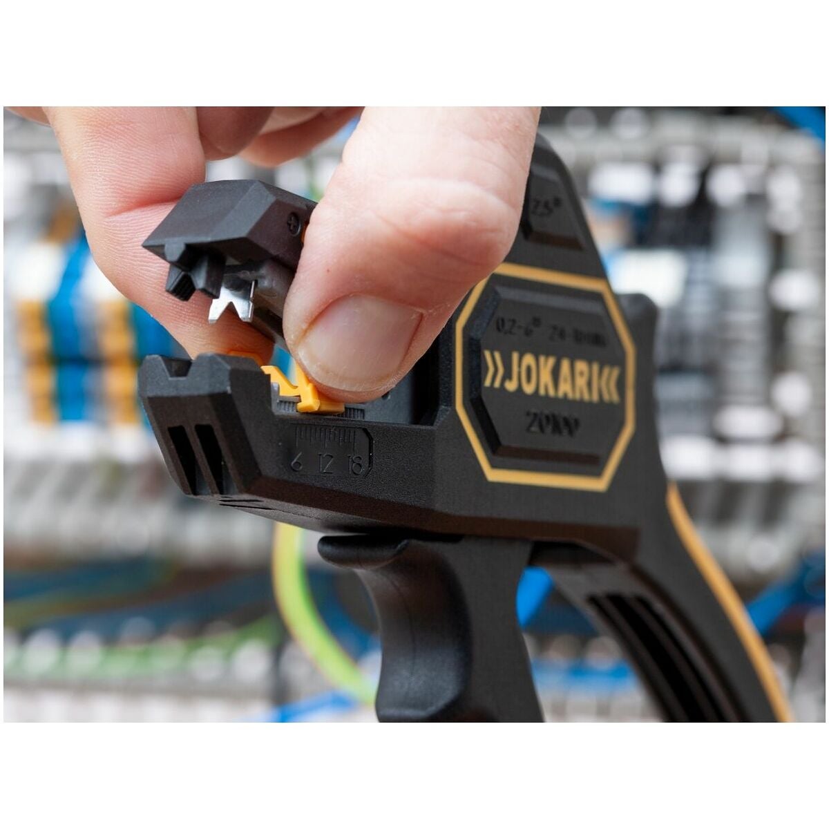 Mycket stabil och lätt tångkropp av glasfiberarmerad plast. Skären anpassar sig automatiskt till olika kabeldiametrar. Isoleringen kapas och skalas av i ett och samma arbetsmoment.