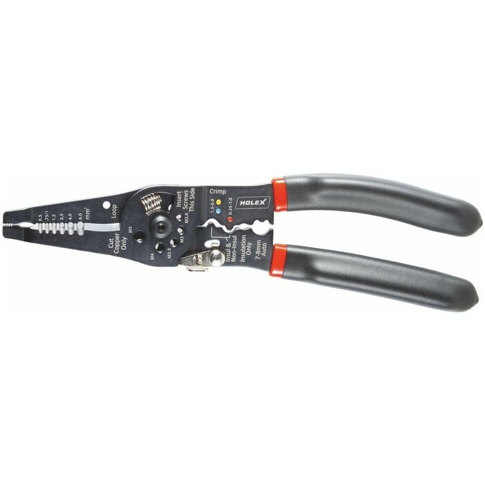 Tångstomme av stålplåt, svartlackerad, skänklar med plasthöljen och öppningsfjäder. Press för 0,35 – 1; 1,5 – 6 isolerade / oisolerade stickkontakter/skarvar och 7 – 8 mm biltändklämmor. Avbitare med gänga för bultar M2,6−M5. Avisolerare 0,5 – 6 mm2. Skär för mjuka Cu- och Al-trådar. Långtandad spänndel för arbete i trånga utrymmen.