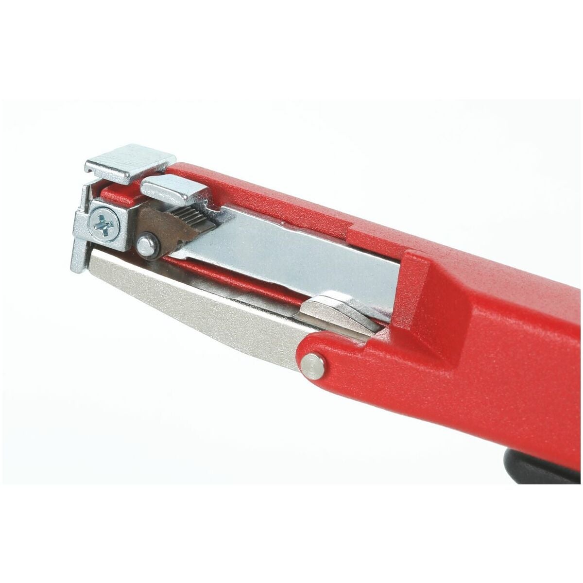 Förinställd åtdragning och kantnära kapning av buntband i ett och samma arbetsmoment. Inställbar dragkraft. Buntbanden kapas rent och snyggt utan vassa grader. Den avklippta bandänden hålls fast av medbringaren.