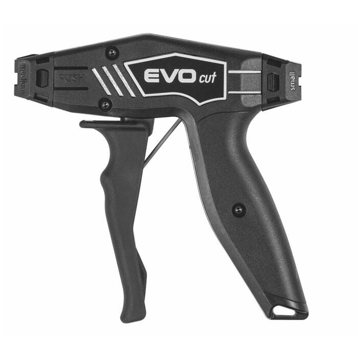 Skärverktyget består av ett lätt plasthölje och ett ergonomiskt och halksäkert handtag som ger ett bekvämt och säkert grepp. Med fästögla för anslutning av fallskyddsutrustning. Verktyget omfattar tre utbytbara ändkåpor för plastbuntband med olika bredd och tjocklek.