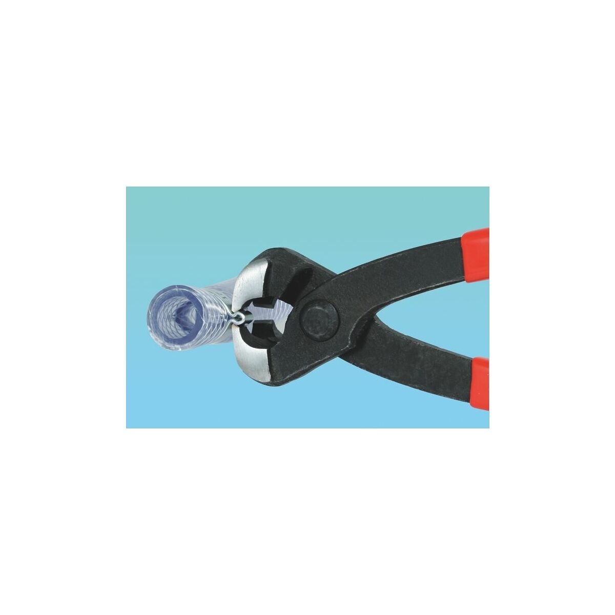 För montering av slangklämmor med 1 och 2 öron på axelmanschetter, kylvätske- och bränsleledningar, lufttrycksystem, kompressorer. Genom den speciella käftanordningen kan slangklämmorna pressas samman antingen framifrån eller från sidan, allt efter arbetsområdets tillgänglighet.