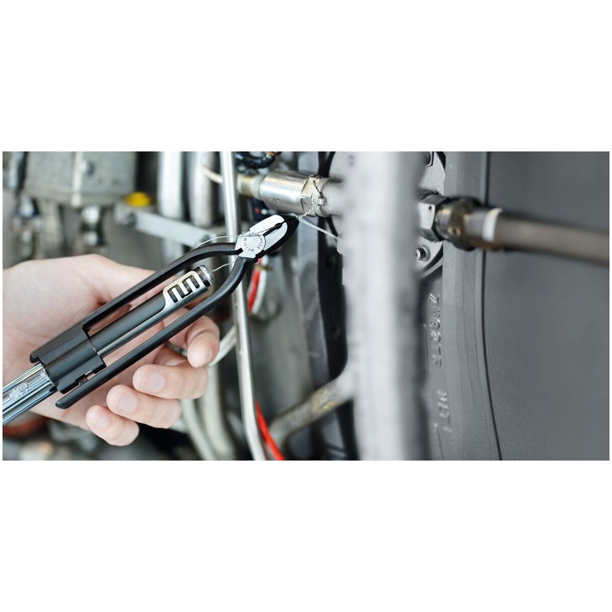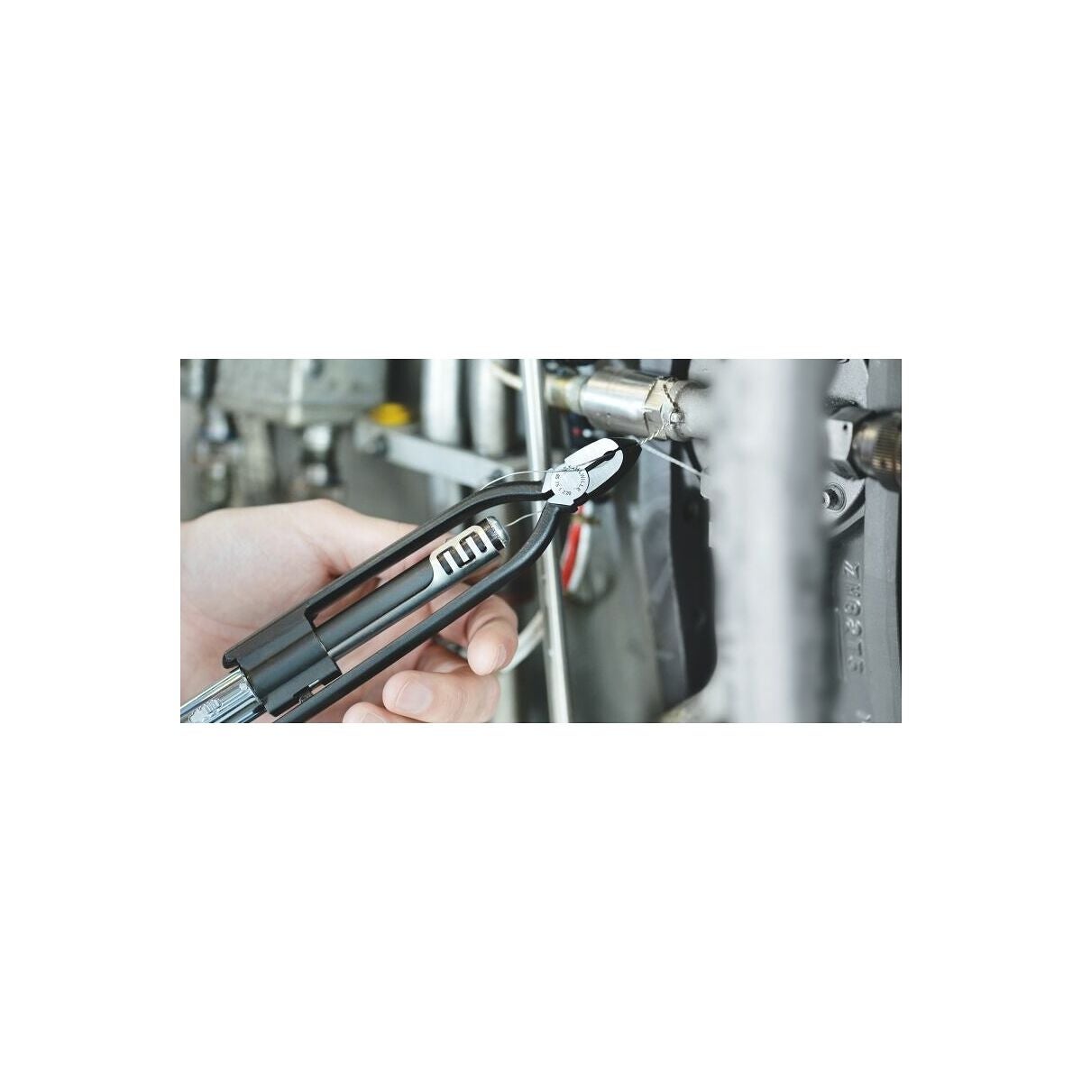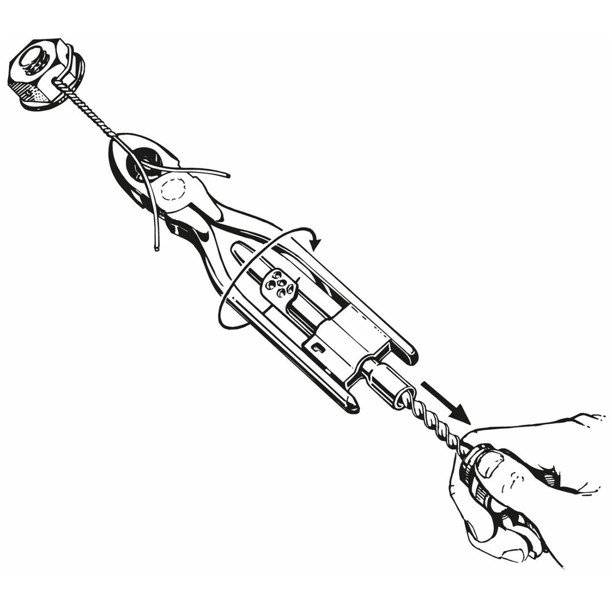 För tvinning av säkringstråd (se figuren). Genom förskjutning av greppet kan alla trådlängder bearbetas. För tråd-⌀ upp till ca 1,6 mm. För höger- och vänstertvinning, med automatisk återgång.