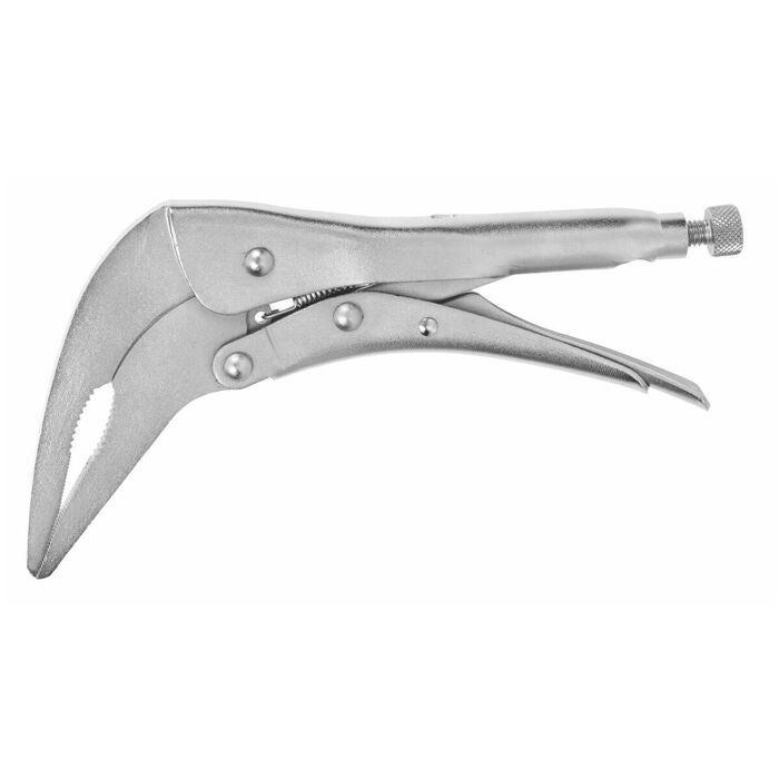 Långa, smala käftar, vinklade 70°. Räfflade på insidan, ett oräfflat område på bakre käftänden för klämning av slangar. Den särskilda huvudformen gör att tångskänklarna inte är i vägen i arbetsområdet i spänt tillstånd.