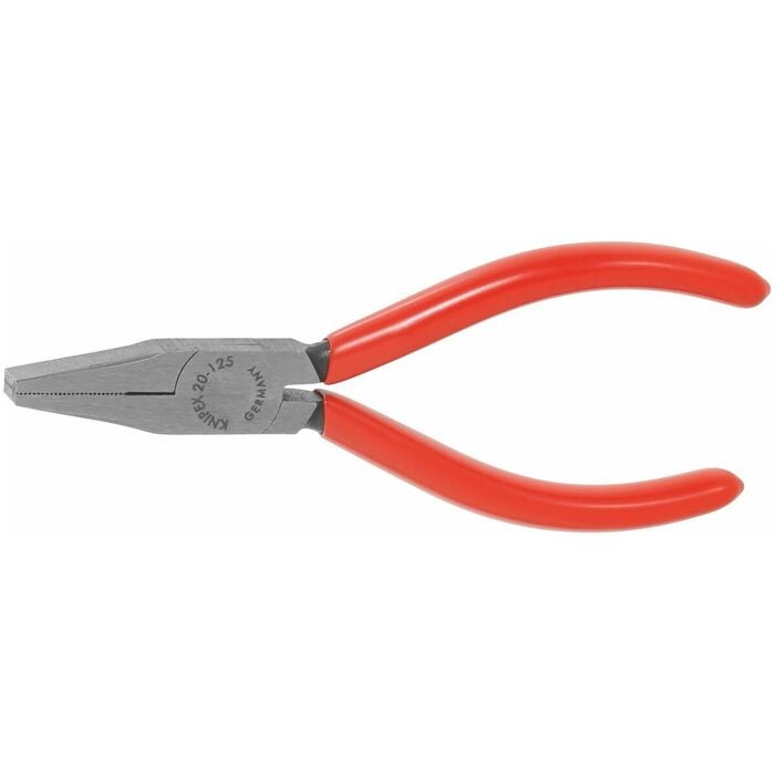 Kemiskt svärtad tång, polerat huvud, plastklädda handtag.