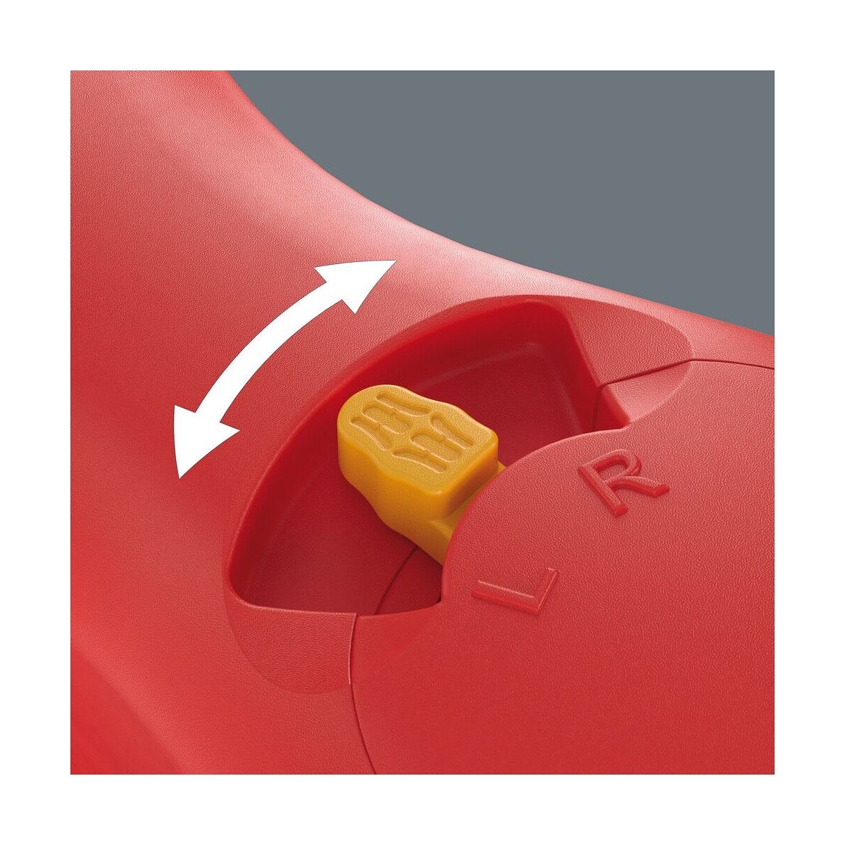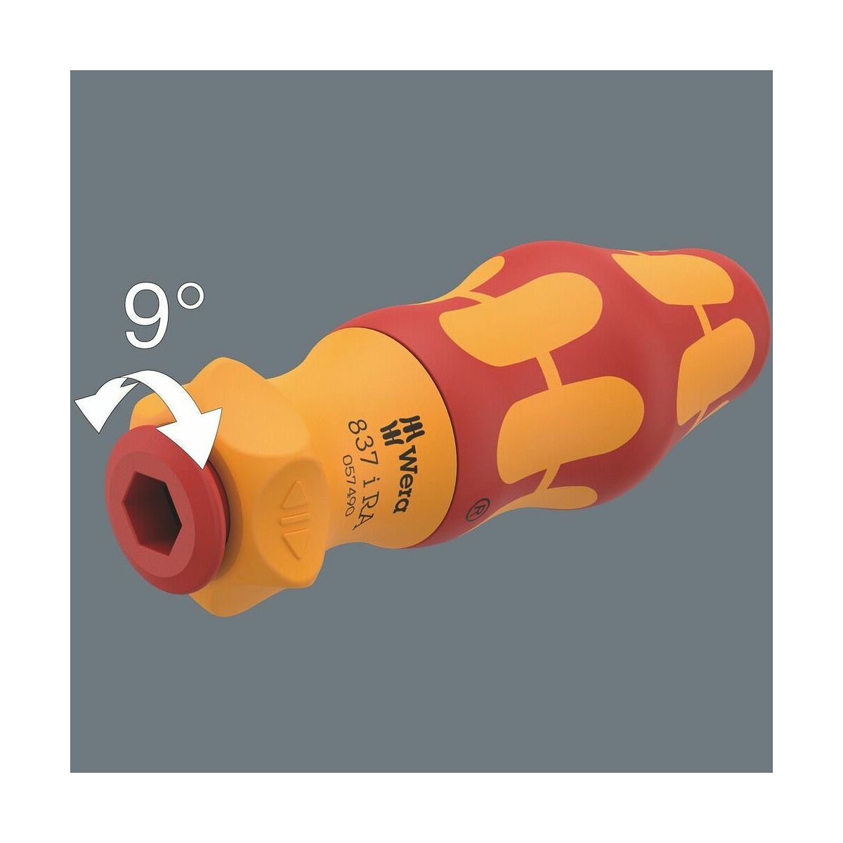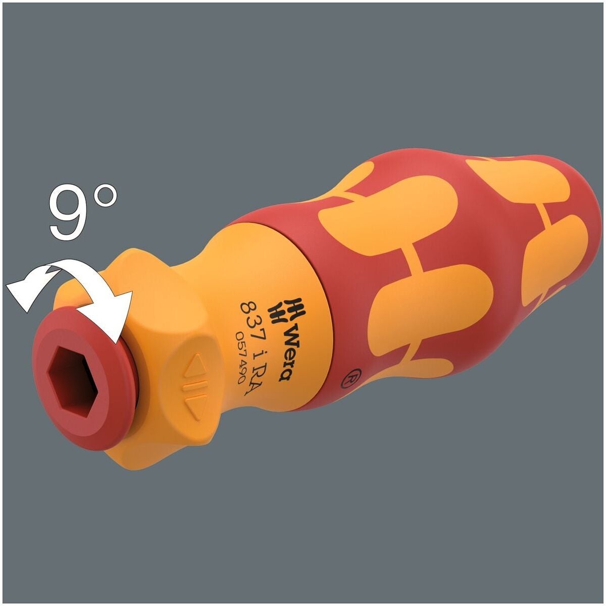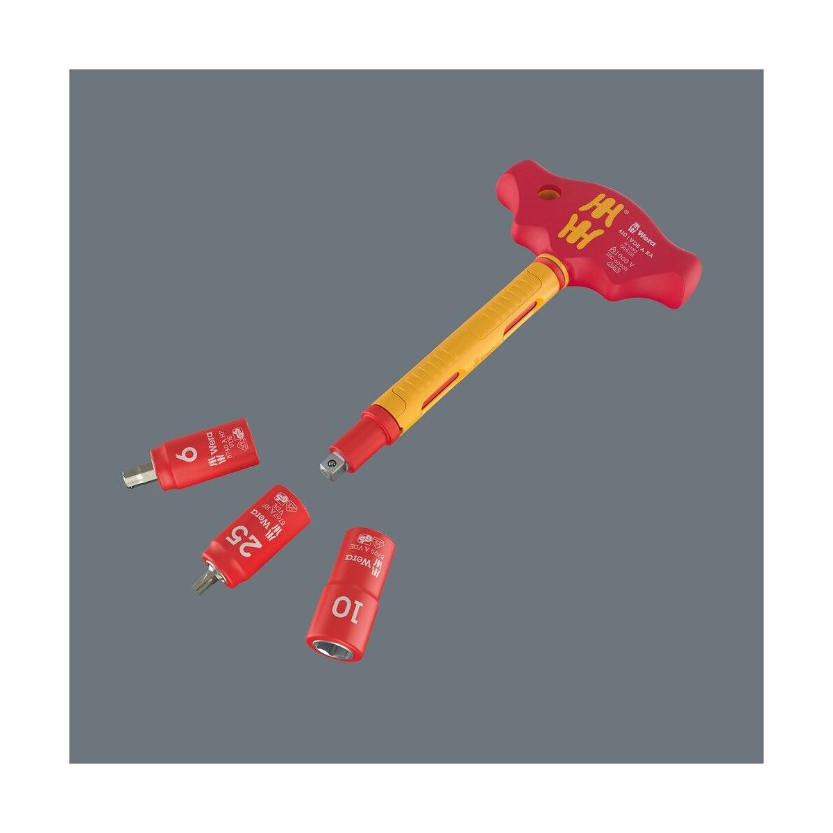 Kraftformhandtag med spärrfunktion och fintandning som ger en liten återgångsvinkel. Lättmanövrerad omställning. Lossa och dra åt skruven, även om det inte finns något motstånd, genom att 'virvla' med den. Sexkantsrullstopp mot ivägrullning. Kraftform-T-handtag med spärrfunktion med frihjulshylsa och fyrkants-utgående axel (1/4 tum).
