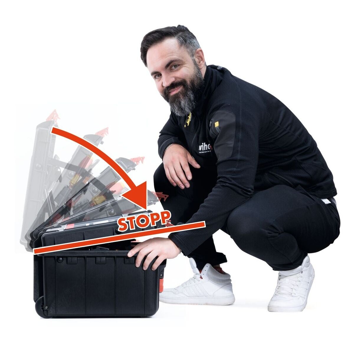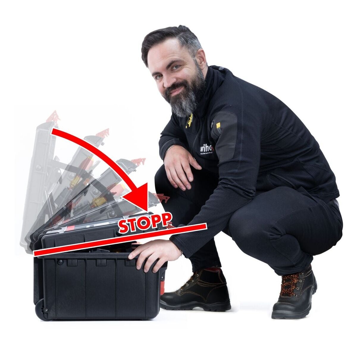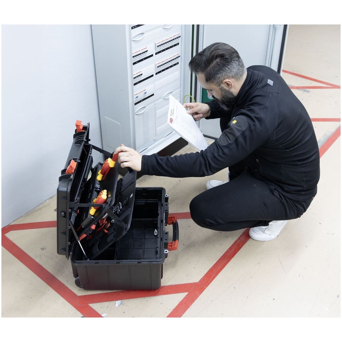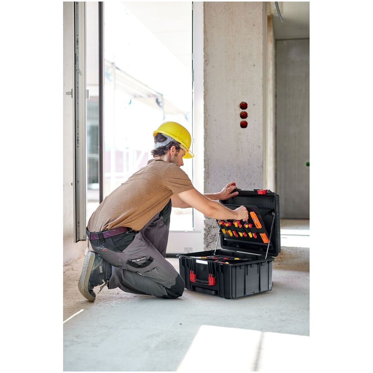 XL 2 Trolley erbjuder ett optimalt förvaringsutrymme och flexibel organisation för mångsidig användning. Med 92 öglor, två insticksmoduler, ett dokumentfack och ett fack för smådelar och individuellt justerbar bottenlayout sörjer för ordning och snabb åtkomst till verktyg. Ergonomiska och isolerade skruvverktyg för säkert arbete på elektriska anläggningar, testade enligt IEC 60900.