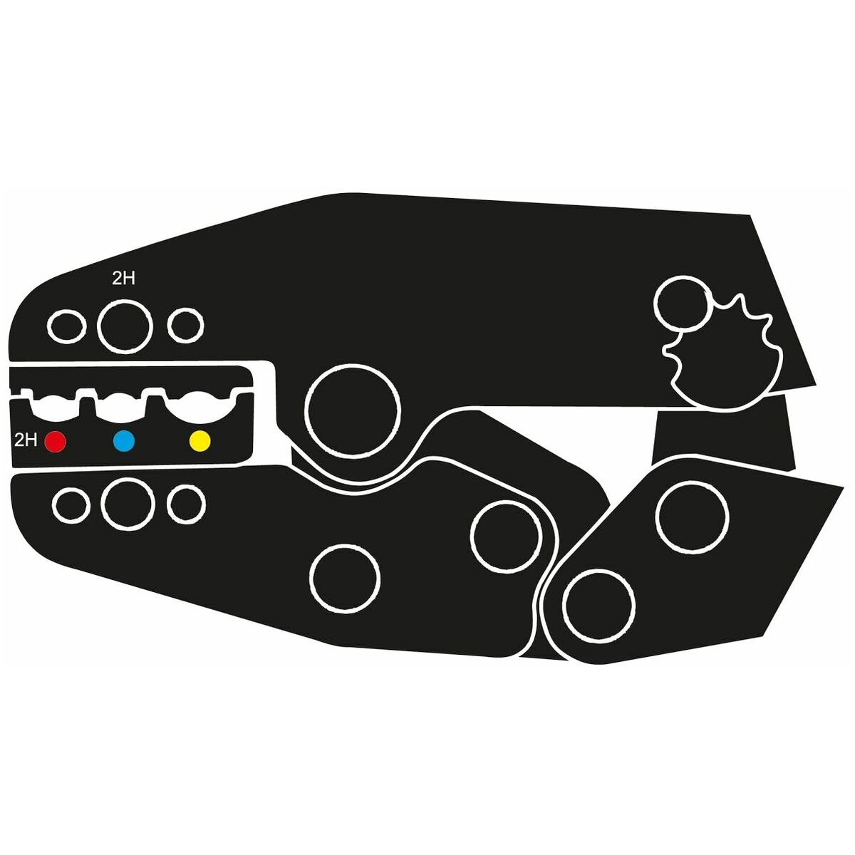 Omfångsrik sats för pressning av gängse isolerade kabelskor, stift och skarvdon. Robust, kraftig presstång med kraftutväxling för tvärsnitt på 0,5 − 6 mm2.