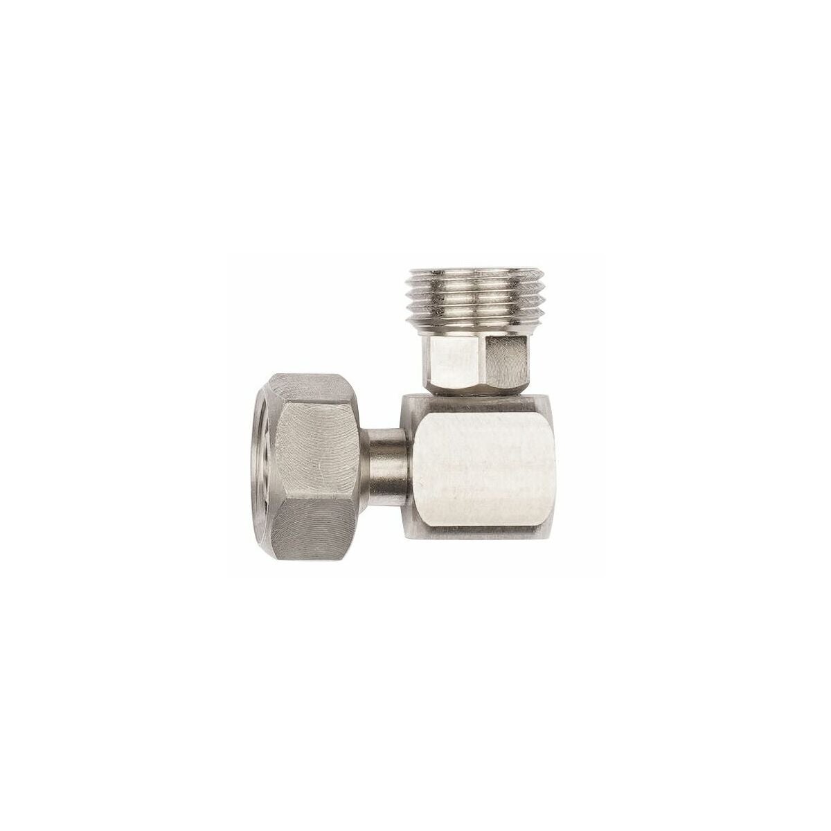 Vinkelstycke med 90°-böjning för riktad anpassning av slangdragningen vid trånga installationsförhållanden.