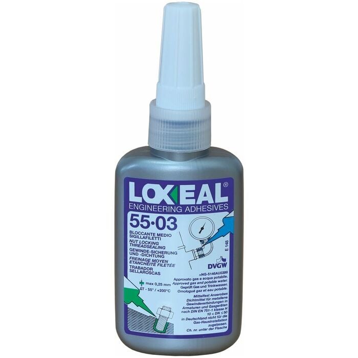 Medelhållfast, kan användas som skruvlåsning och gängtätning, upp till 200 °C, även för passiva material, utan beteckning.