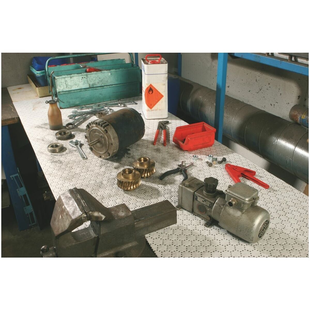Olje- och kemikalieuppsamlingsduk med enastående uppsugningsförmåga (upp till 20 gånger den egna vikten), och därmed mycket låga saneringskostnader eftersom avfallet blir mycket mindre. Uppsamlingsduken är gjord av 100 % polypropen och lämplig för nästan alla kemikalier. Avsevärt bättre säkerhet och renlighet − varken vätskor eller granulat på golvet.