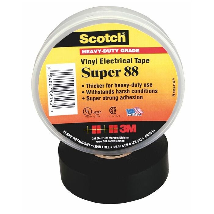 3M Scotch® Super 88 och Scotch® Super 33+ är en extra elastisk och UV-beständig premiumtejp med mycket goda elektriska egenskaper och beständighet mot fukt, lutar, många syror och lösningsmedel.