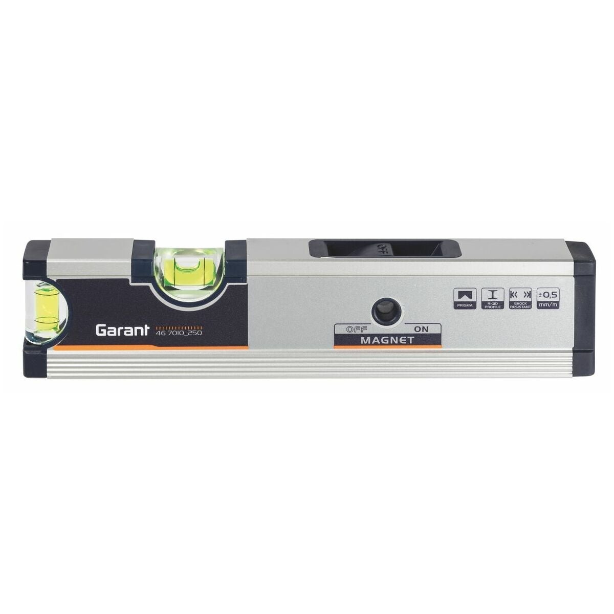 Stabil, eloxerad aluminiumprofil. Plan och prismatisk mätyta. Den inkopplingsbara magneten fungerar på plana ytor och t.ex.