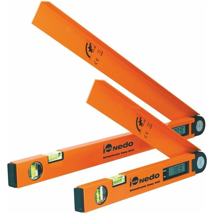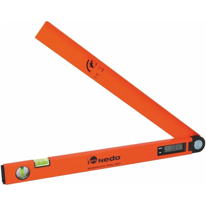 Vinkelmätinstrument med noggrann visning av den rörliga mätskänkelns öppningsvinkel. Med integrerad horisontal- och vertikallibell. Hållknapp för fasthållning av mätvärdena. Nollställning av displayen kan göras i godtyckligt läge.