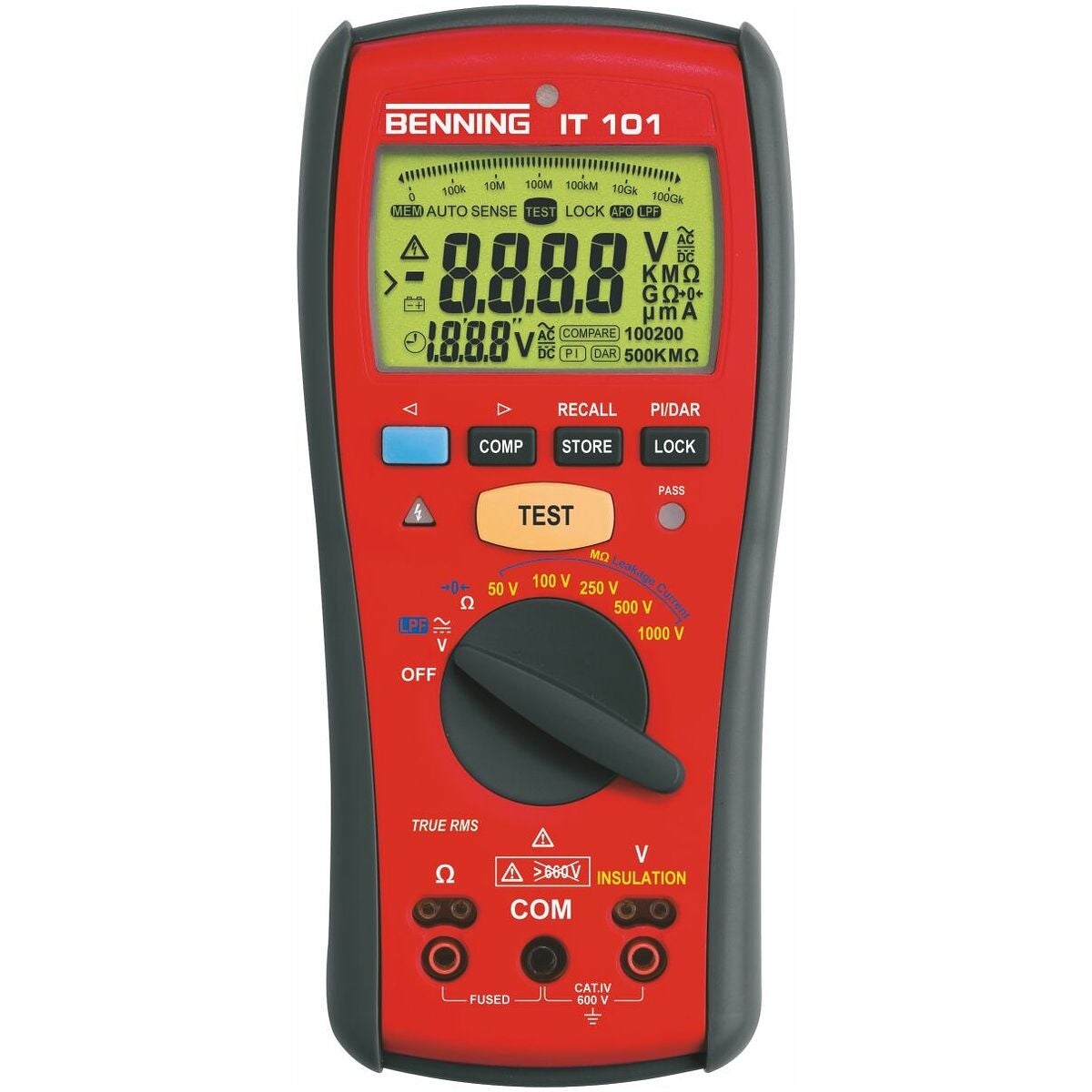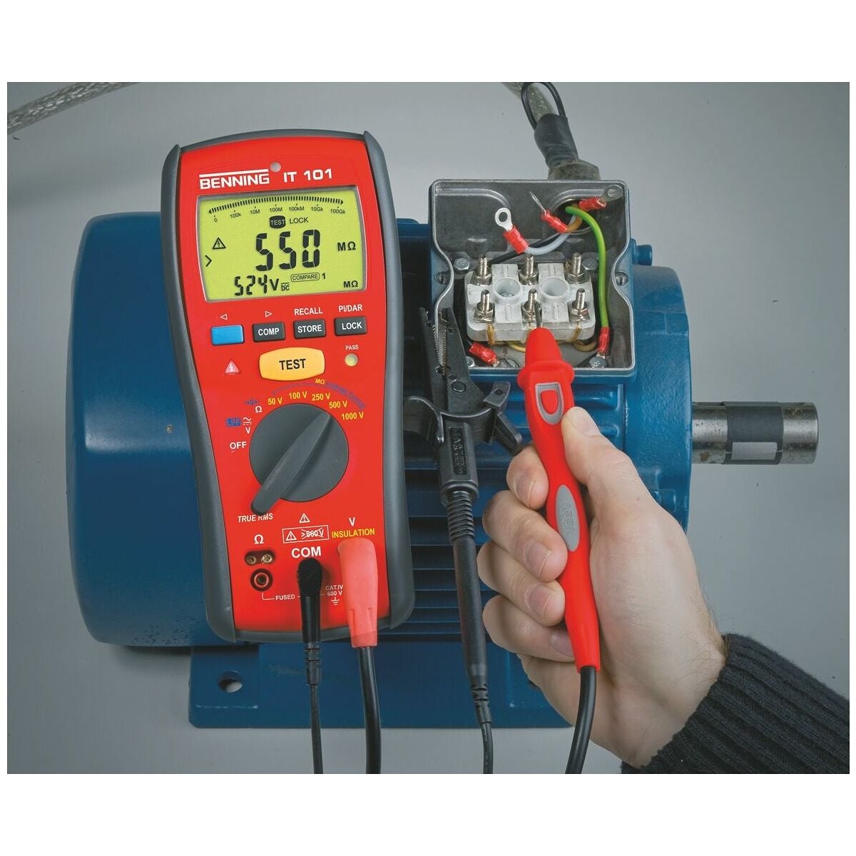 Mätningar: Bland annat lågohm, isolationsresistans (provspänning: 50 V, 100 V, 250 V, 500 V, 1000 V) och beräkning av resulterande läckström, resistans med 200 mA provningsström för kontroll av skyddsledaranslutningar, polarisationsindex, dielektrisk absorptionsgrad, spänning, resistans.