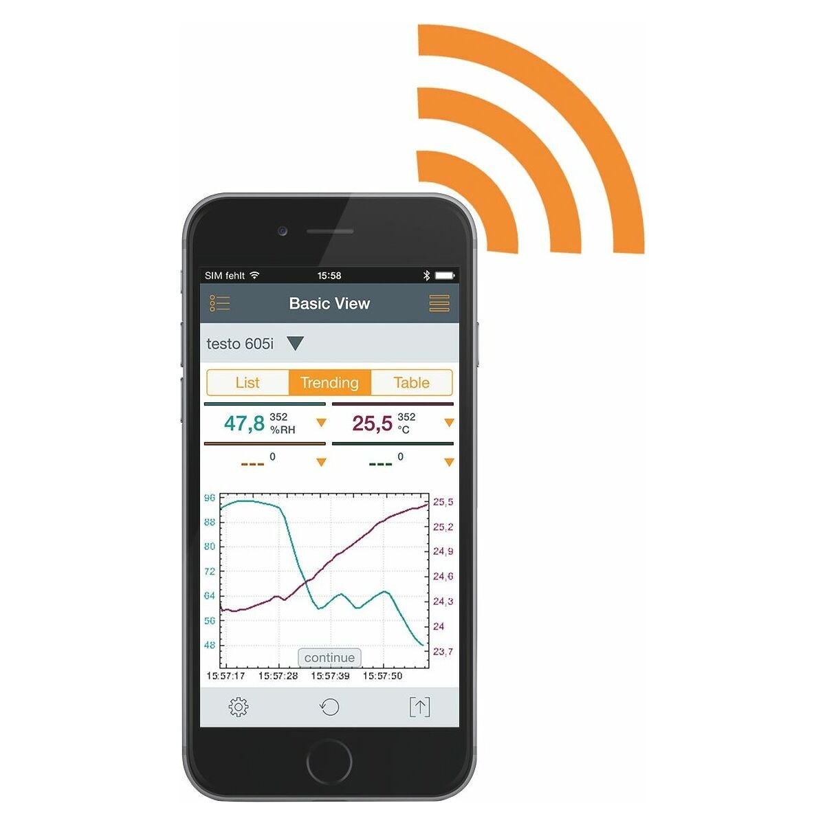 - Trådlös avläsning av uppmätta värden på din mobila enhet.