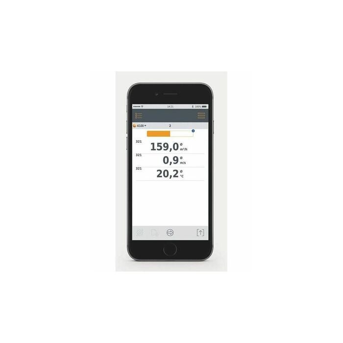 Kompakt mätutrustning, optimerad för smartphones. Alla uppmätta värden överförs direkt till den kostnadsfria testo Smart Probes-appen (systemkrav: iOS 8.3 eller Android 4.3 eller senare/Bluetoot ® 4.0) och kan läsas av med en mobil enhet, registreras och skickas sedan direkt via e-post.