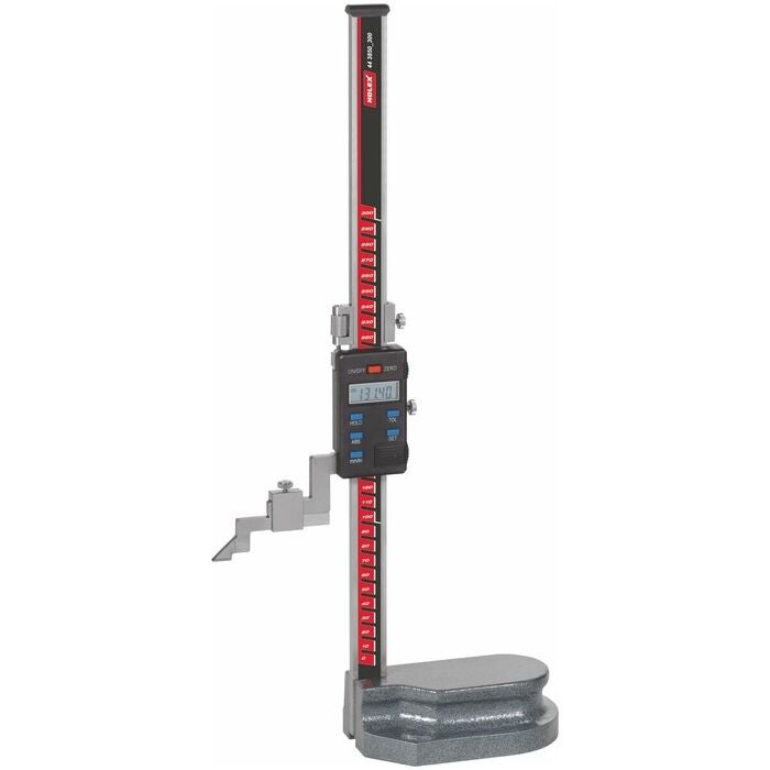 Digitala höjdmätare och höjdritsmått med fininställning. Kraftig fotplatta med slipat underlag.