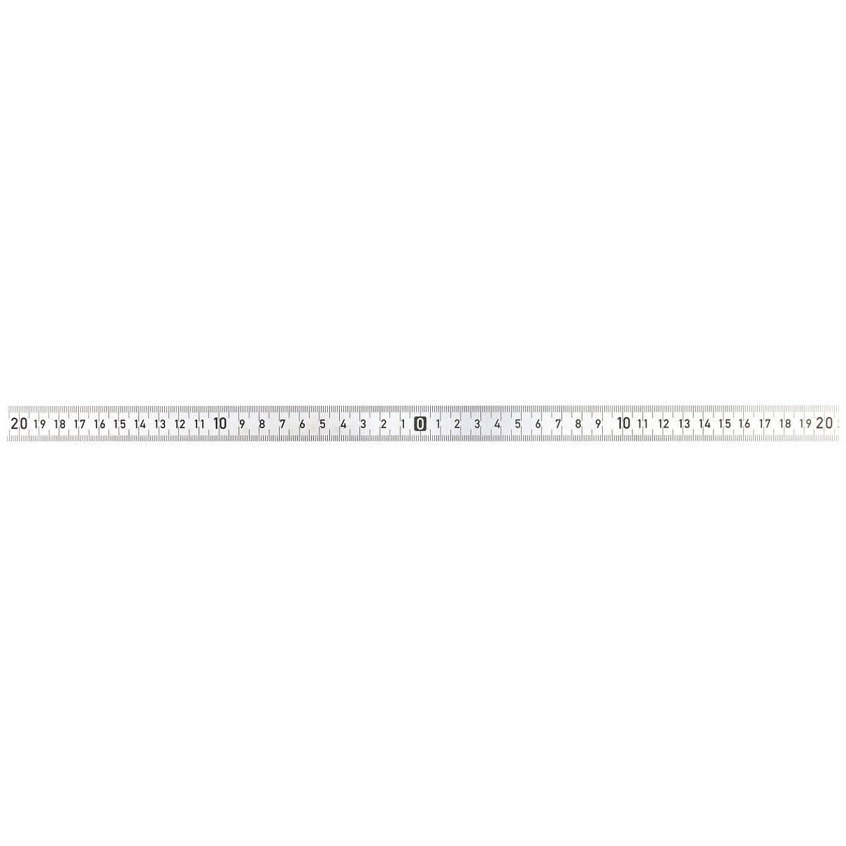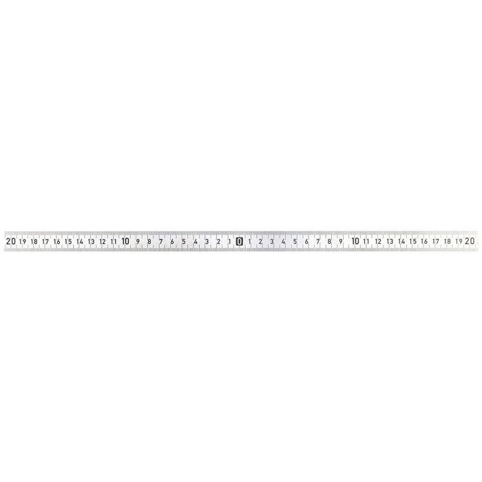 Stålskala böjlig, smal, rostfri matterad, skala med nollpunkt i mitten